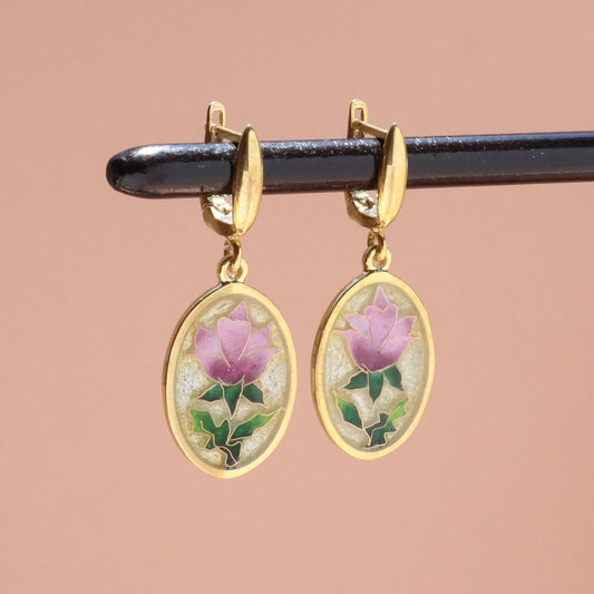 Cloisonne Lotus Earrings