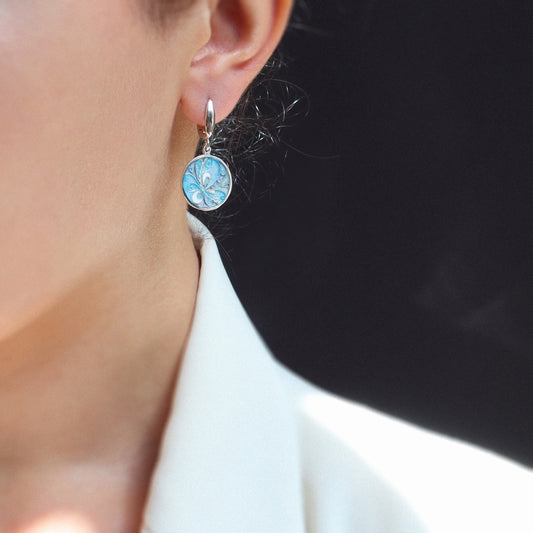 Blue Cloisonne Silver Earrings
