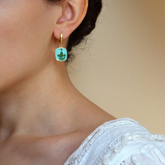 I've already bought these earrings in different colours and when I saw this new shade I couldn't resist... earrings arrived yesterday and I wasn't disappointed... this Tiffany shade is truly gorgeous! I also have to mention the kindness of Maria, she really cares for customers and always has great communication and support if needed. I really recommend this shop for his unique jewelry and excellent service!
